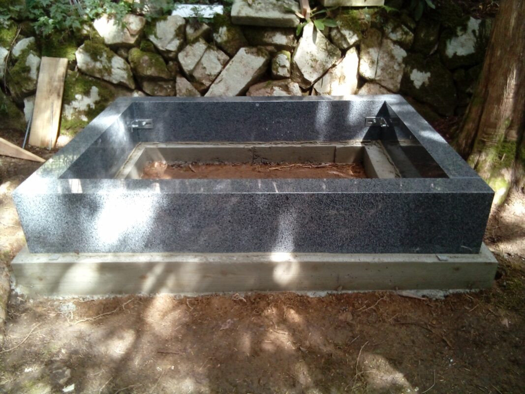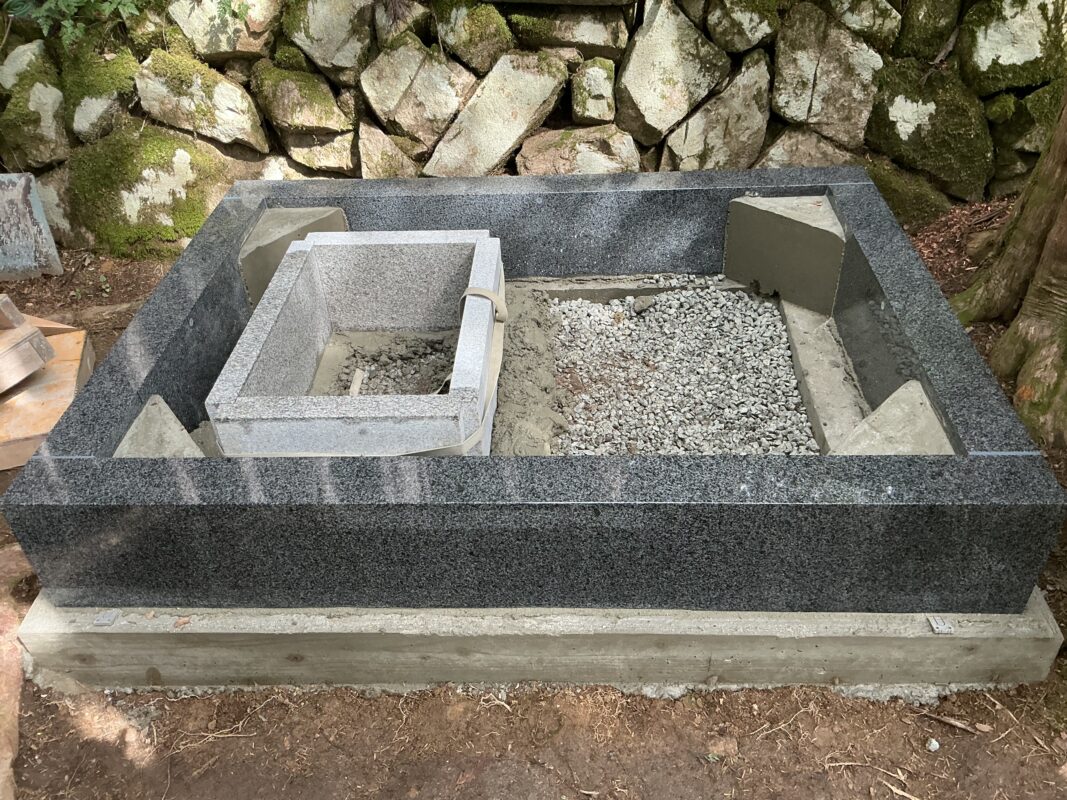 固定した金物部分はコンクリートで覆ってから御影石で納骨所を新設しました。